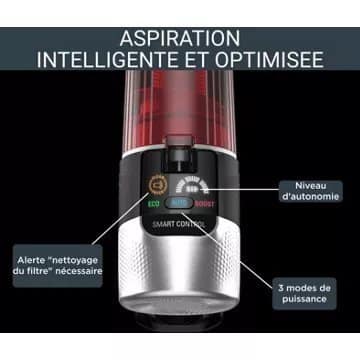 - Détail sur la puissance d’aspiration: : Elle peut varier en fonction du type de sols (parquet, carrelage, tapis, moquette) que vous aspirez et du mode utilisé (standard, éco, boost)