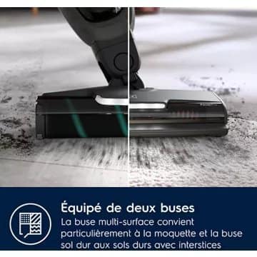 - Détail sur la puissance d’aspiration: : Elle peut varier en fonction du type de sols (parquet, carrelage, tapis, moquette) que vous aspirez et du mode utilisé (standard, éco, boost)