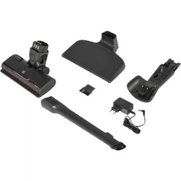 - Aspirateur à main : Directement intégré au corps de l’aspirateur balai. Se détache facilement pour une utilisation d’appoint (ex: table, voiture, fauteuil)