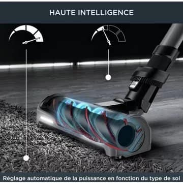 - Détail sur la puissance d’aspiration: : Elle peut varier en fonction du type de sols (parquet, carrelage, tapis, moquette) que vous aspirez et du mode utilisé (standard, éco, boost)