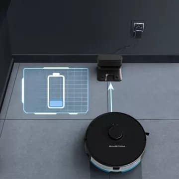 - Reprise automatique du nettoyage : Une fois rechargé, l’aspirateur reprend sa session de nettoyage là où il s’est arrêté