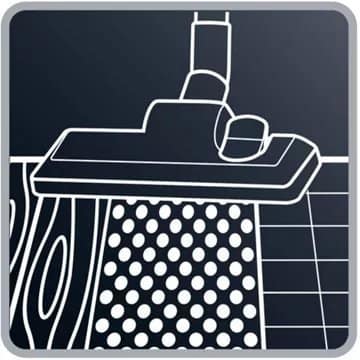 - Brosse principale : Brosse 2 en1 (sols durs et moquettes)