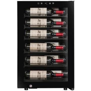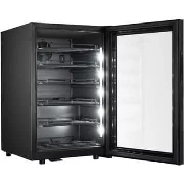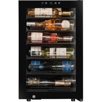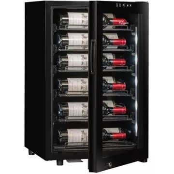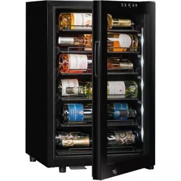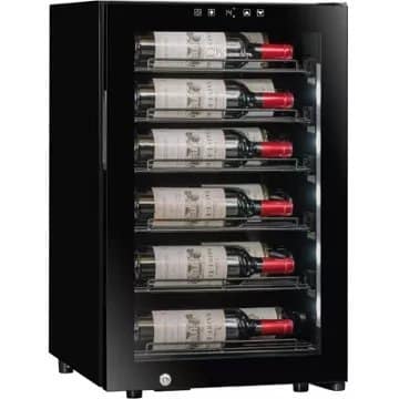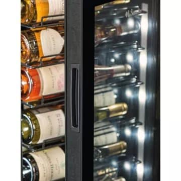 - Type de porte : vitrée, permet de visualiser facilement les bouteilles sans avoir à ouvrir la porte, ce qui réduit la circulation de l’air dans la cave et donc la variation de la température. Le traitement anti-uv protège le contenu.