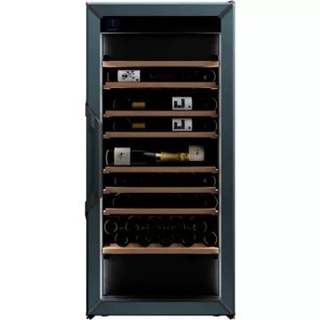 - Type de porte : vitrée, permet de visualiser facilement les bouteilles sans avoir à ouvrir la porte, ce qui réduit la circulation de l’air dans la cave et donc la variation de la température. Le traitement anti-uv protège le contenu.