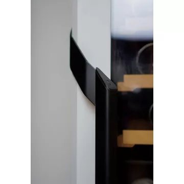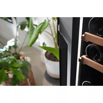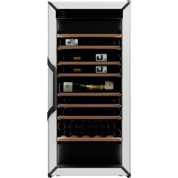 - Type de porte : vitrée, permet de visualiser facilement les bouteilles sans avoir à ouvrir la porte, ce qui réduit la circulation de l’air dans la cave et donc la variation de la température. Le traitement anti-uv protège le contenu.