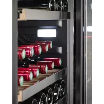 - Eclairage : LED latéral, offre une excellente visibilité pour identifier et sélectionner les bouteilles. Cet éclairage permet une économie d’énergie et n’endommage pas le vin avec des rayons UV nocifs.