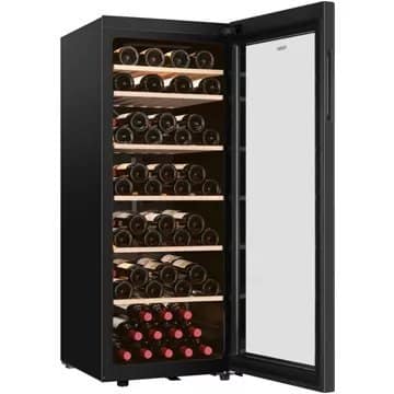 Performante et élégante, la cave HAIER HWS84GA peut accueillir jusqu’à 84 bouteilles, réparties sur 7 clayettes en bois coulissantes. Son panneau de commande électronique externe permet un réglage simple et intuitif, tandis qu’une grille de protection anti-chocs thermiques ajoute une sécurité supplémentaire.