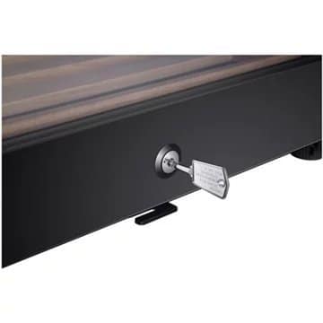 Type de porte : vitrée, permet de visualiser les bouteilles sans ouvrir la cave, limitant ainsi les variations de température. Traitement anti-UV pour une protection renforcée.