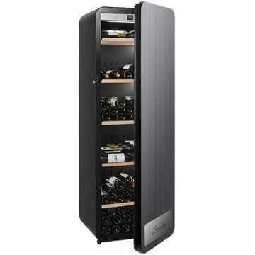 Peut contenir jusqu’à 185 bouteilles type Bordeaux (75 cl) sur 5 clayettes en bois amovibles et multi-formats (3 en position tête‑bêche, 2 en position horizontale) .