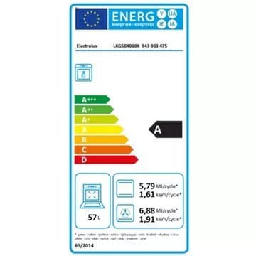 - Valeurs du label énergie : Label énergie A, Consommation en convection naturelle 1,61 kW, Consommation en chaleur tournante 1,91 kW