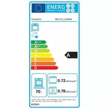 - Valeurs du label énergie : Label énergie A, Consommation en convection naturelle 0,72 kW, Consommation en chaleur tournante 0,78 kW