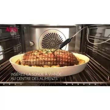 - Sonde de cuisson : la sonde de cuisson permet de surveiller la température à coeur de votre plat. Elle met fin au programme une fois la température atteinte. Vous avez la certitude de réussir vos cuissons même délicates
