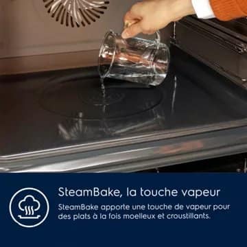 - Avantage du mode avec ajout de vapeur : La cuisson vapeur assistée permet de cuisiner à l’aide de la vapeur, afin d’obtenir des performances de cuisson améliorées. Elle est tout particulièrement recommandée pour le pain et la pâtisserie