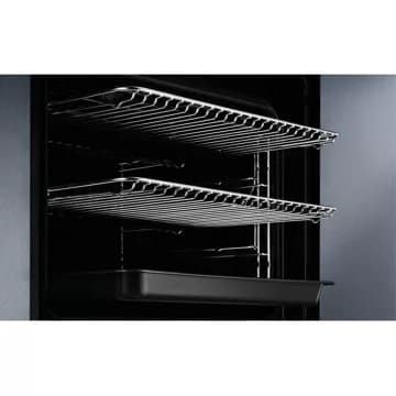 - Avantage de la chaleur tournante pulsée : le four est équipé d’un ventilateur et d’une résistance circulaire situées sur la paroi arrière du four, pour une cuisson simultanée de différents plats sur plusieurs niveaux