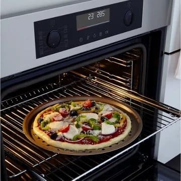 - Avantage de la chaleur tournante pulsée : le four est équipé d’un ventilateur et d’une résistance circulaire situées sur la paroi arrière du four, pour une cuisson simultanée de différents plats sur plusieurs niveaux