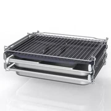 - Rails téléscopiques : ils permettent d’accéder à vos plats en les faisant coulisser en dehors de l’enceinte de cuisson en évitant les risques de basculement. Vous pourrez arroser confortablement votre rôti ou retourner facilement vos plats sans risque de brûlure.