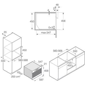 - Type d’encastrement : Four compact (hauteur 45 cm)