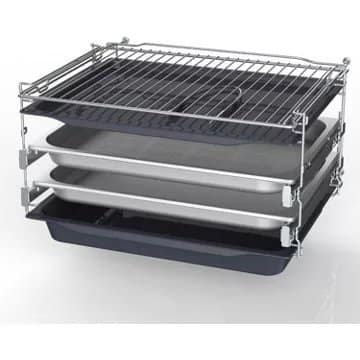 - Rails téléscopiques : ils permettent d’accéder à vos plats en les faisant coulisser en dehors de l’enceinte de cuisson en évitant les risques de basculement. Vous pourrez arroser confortablement votre rôti ou retourner facilement vos plats sans risque de brûlure.
