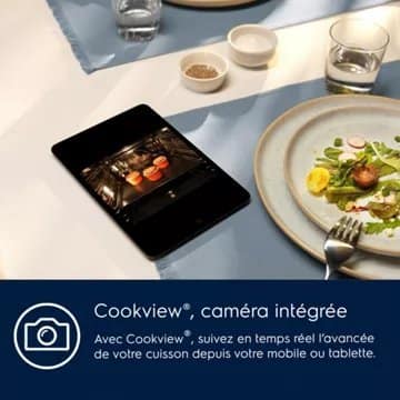 - Caméra intégrée : Grâce à la caméra présente à l’intérieur de la cavité, suivez en temps réel, sur mobile ou tablette, la cuisson de vos plats.