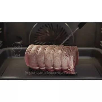 - Sonde de cuisson : la sonde de cuisson permet de surveiller la température à coeur de votre plat. Elle met fin au programme une fois la température atteinte. Vous avez la certitude de réussir vos cuissons même délicates