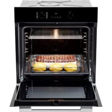 - Avantage de la chaleur tournante pulsée : le four est équipé d’un ventilateur et d’une résistance circulaire situées sur la paroi arrière du four, pour une cuisson simultanée de différents plats sur plusieurs niveaux