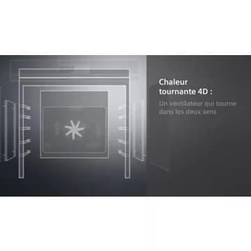 - Avantage de la chaleur tournante pulsée : le four est équipé d’un ventilateur et d’une résistance circulaire situées sur la paroi arrière du four, pour une cuisson simultanée de différents plats sur plusieurs niveaux
