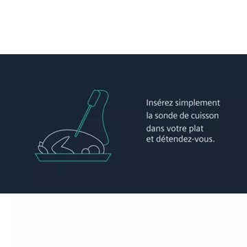- Sonde de cuisson : la sonde de cuisson permet de surveiller la température à coeur de votre plat. Elle met fin au programme une fois la température atteinte. Vous avez la certitude de réussir vos cuissons même délicates