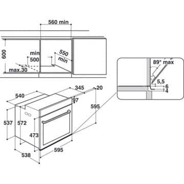 - Type d’encastrement : Four standard (60 x 60 cm)