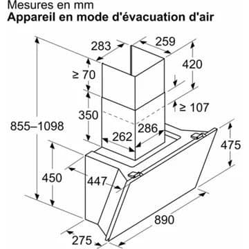 - Type de hotte : : décorative murale inclinée – évacuation et recyclage