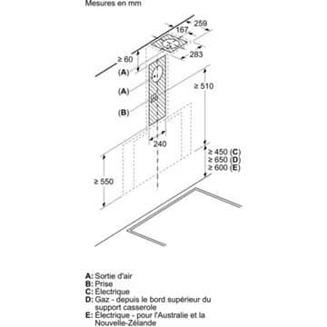 - Type de moteur : induction, une performance silencieuse et économe en énergie. Cette technologie avancée garantit une extraction efficace des vapeurs de cuisson tout en réduisant le bruit et la consommation d’électricité, assurant ainsi une expérience de cuisson agréable et économique.