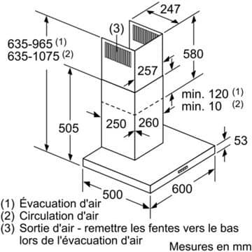 - Largeur : 60 cm, pour une zone de cuisson allant jusqu’à 60 cm de largueur.