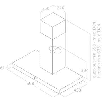 - Débit d’air maxi : 540 – idéal pour une cuisine de 25m².