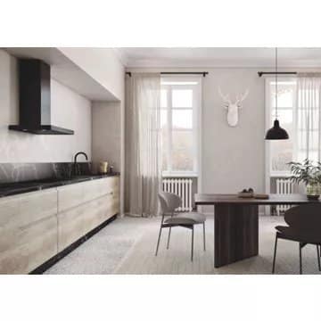 - Type de hotte : décorative murale, combine style et fonctionnalité. Elle ajoute une touche d’élégance à la cuisine tout en assurant une extraction puissante des fumées et odeurs.