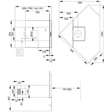 - Largeur : 90 cm, pour une zone de cuisson allant jusqu’à 90 cm de largueur.