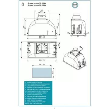 - Largeur : 53 cm, pour une zone de cuisson allant jusqu’à 60 cm de largueur.