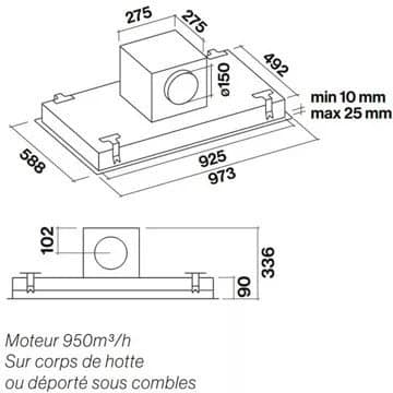 - Type de hotte : : encastrable plafond – évacuation et recyclage