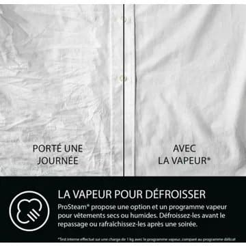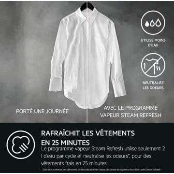- Rafraîchissement vapeur : oui, programme dédié qui désodorise et donne une sensation de fraîcheur à votre linge