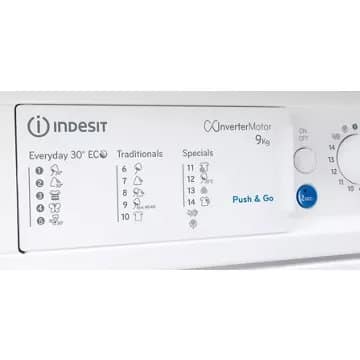 - Push & Go : plus besoin de programmer votre machine, vous n’avez qu’à appuyer sur un bouton pour allumer la machine, sélectionner et lancer le programme mix 30°C de 45 minutes.