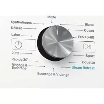 - Anti-mousse : détecte un excès de mousse dans le tambour (provoqué généralement par un surdosage de lessive) et effectue un ou plusieurs rinçages supplémentaires.