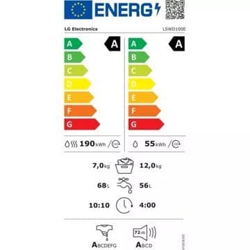 - Consommation d’électricité pour 100 cycles (programme éco, lavage et séchage) : 190,0 kW