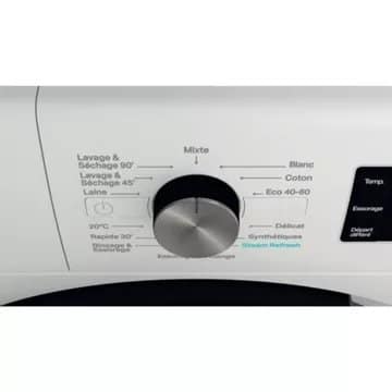 - Défroissage vapeur : oui, il agit en fin du cycle de lavage en adoucissant et défroissant votre linge