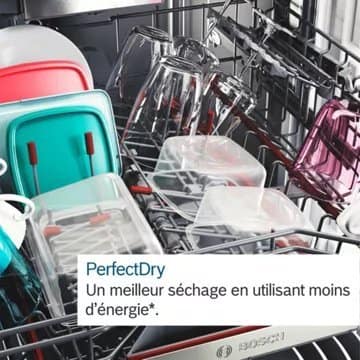 - Tiroir à couverts : Oui, il est placé dans la partie haute du lave-vaisselle et permet de bénéficier de 25% d’espace supplémentaire dans le panier inférieur