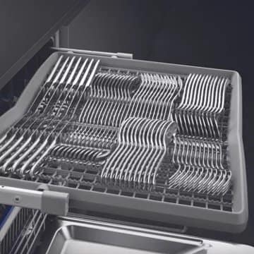 - Tiroir à couverts : Oui, il est placé dans la partie haute du lave-vaisselle et permet de bénéficier de 25% d’espace supplémentaire dans le panier inférieur