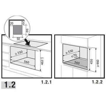 - Hauteur niche d’encastrement : Micro ondes hauteur 45 cm