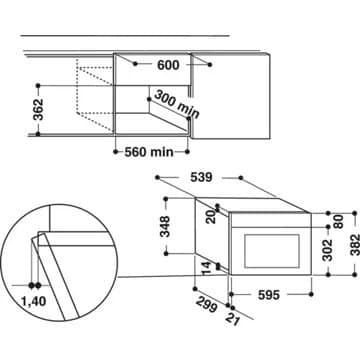 - Hauteur niche d’encastrement : Micro ondes hauteur 38 cm