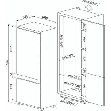 • Dimensions d’encastrement l x h x p : 71.4 x 194.5 x 56.3 cm