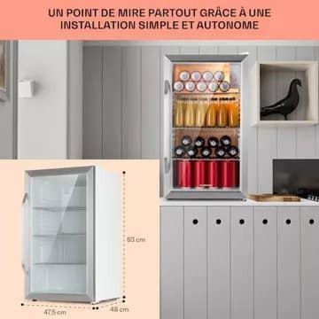 Capacité : 80 L dans un format compact (≈ 47,5 × 83 × 48 cm) – parfait pour un usage boissons ou stockage secondaire.