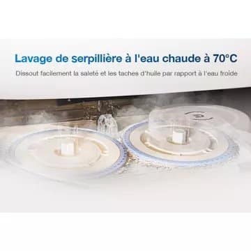 - Autonettoyage des serpillières (fin de session de nettoyage) : Oui, lavage à l’eau chaude (70°C) pour une meilleure qualité de nettoyage