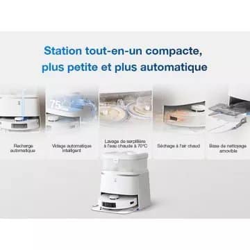 - Type de station : Station de charge, vidage automatique (poussière) et remplissage automatique (eau propre)