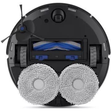- Serpillière déportée : le robot est capable de nettoyer plus efficacement les angles et bords des murs en déployant sa serpillière vers l’extérieur.